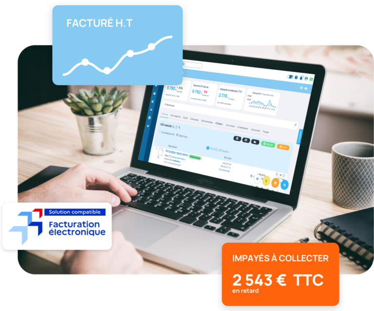 Factures, achats, produits, stocks, compte pro, caisse… Tout ce qu’il vous faut, pour bien gérer votre activité.