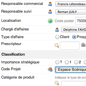 L'activation de l'app ajoute un nouveau champ "prescripteur" sur le formulaire des affaires, devis et factures.