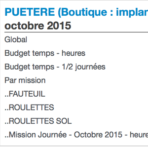 - Le budget temps consommé total et par misssion/produit