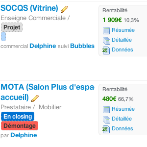 - Sur la liste des affaires : la vue de la rentabilité en valeur et en pourcentage