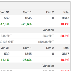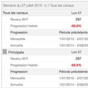 L'analyse par canaux de vente vous permet de retrouver votre CA réalisé par semaine avec un détail par jour et de comparer les ventes à J-7, M-1, A-1