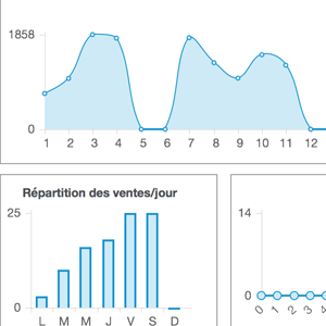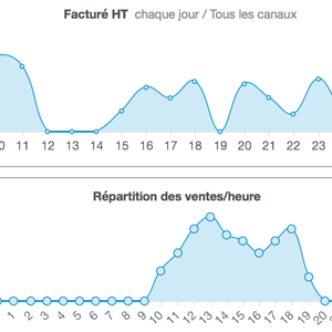 Avec l'app "Analyse des ventes en multicanal", suivez vos ventes et leurs évolutions par jour, détaillées par canal.