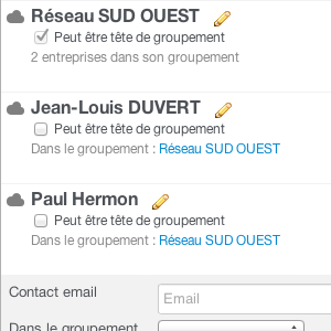 Pour définir qu'une entreprise est une tête de groupe régional, cochez la case "Peut être tête de groupement"'