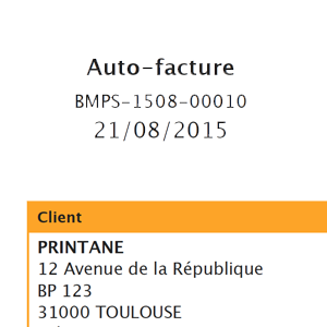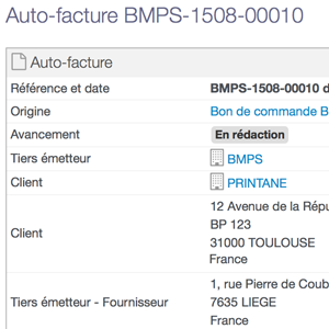 Le format de l'auto-facture se construit selon le même que les bons de commande fournisseurs ou factures d'achat.