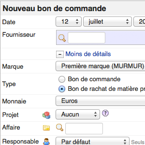 Lors de l'ajout d'un nouveau bon de commande, dans le champ "type" de document, vous disposez d'une nouvelle option à cocher : Bons de rachat de Matière Première.
