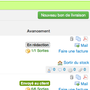 - l'objet "bons de livraison" dans la chaine de gestion commerciale "du devis à la facture". Ainsi vous pouvez créer un bon de livraison depuis un devis et transformer un bon de livraison en facture totale ou partielle.