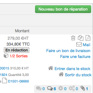 Pour gérer vos stocks sur un bon de réparation, notifiez vos entrées et sorties via les liens :