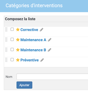 - D'ajouter des catégories pour créer un niveau de classement de vos bons d'intervention