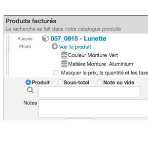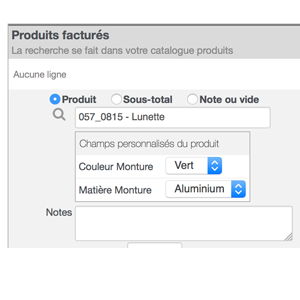 - De sélectionner la caractéristique produit lors de son ajout dans un devis ou une facture