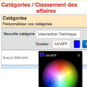 - Associez la couleur de votre choix, en cliquant sur la petite case du champ "Couleur". Sélectionnez votre couleur sur la palette proposée.