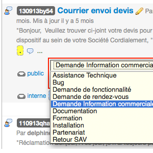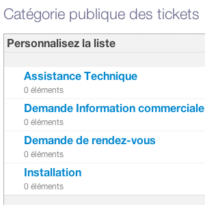 Le paramétrage de la catégorie "Publique" correspond à la qualification de la demande émise par le client, et le paramétrage interne est lui lié à la liste des actions à réaliser en interne, par l'equipe, pour traiter le ticket.
