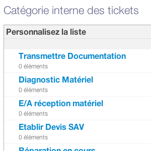 Avec l'app "Classement des tickets", créez des listes d'actions ou d'objets de qualification des messages pour mieux organiser ensuite la gestion de vos demandes clients.