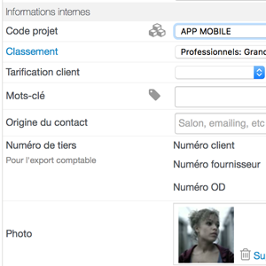 Ce nouveau champ vous permet de lier un contact ou une société à un de vos codes projets ou centre de profit, et d'exporter cette information.