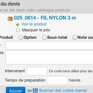 En sélectionnant "6 m", s'affichera alors le nom du produit "FIL 6m", sur votre devis