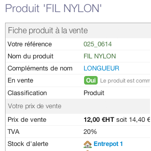 Par exemple : vous vendez du fil sur mesure, au mètre, stocké en rouleau pour vous, et ne souhaitez pas créer un article spécifique pour chacune des longueurs type vendues de 3m, 6m etc.. Pourtant vous voulez indiquer cette longueur dans l'intitulé de l'article. Cette app vous permet de régler les variables du nom de l'article, que vous pourrez appeler dans vos devis et factures.