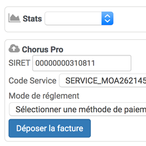Un clic sur le Bouton "Déposer la facture", présent dans le cadre, déclenche l'envoi de la facture sur Chorus Pro