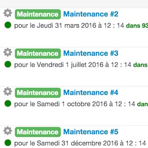 Les échéances de maintenance peuvent être mensuelles ou trimestrielles, et vous pouvez choisir le jour auquel elles démarrent.