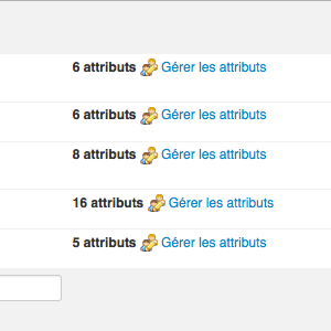 Depuis la page de gestion des groupes de déclinaison, sur la ligne du groupe, cliquez sur le lien "gérer les attributs".