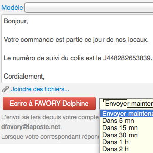 Après avoir choisi votre délai d'envoi, cliquez sur le bouton rouge "écrire à xxx"