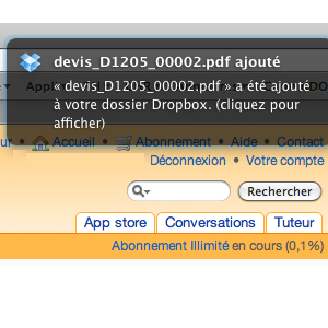 L'app "Dropbox" vous permet de synchroniser vos documents présents sur votre Bureau Virtuel avec Dropbox