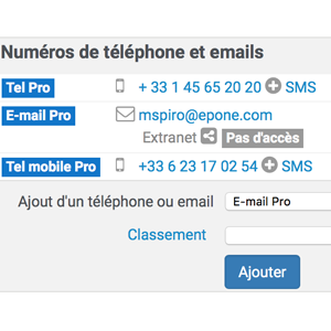 L'activation de l'app "envoi de SMS" afiiche un nouveau lien "+SMS" à côté des numéros de téléphone.