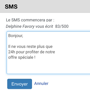Passez sur le numéro de téléphone : à droite du numéro, s'affiche alors un lien +SMS.