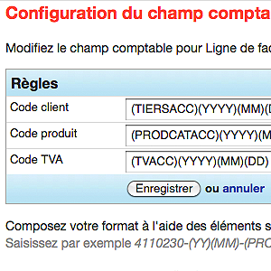 Dans le champ "code comptable", saisissez le numéro comptable à attacher à votre produit ou votre client.