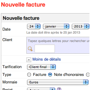 Lors de l'ajout d'une nouvelle facture, dans le champ "type" de document, vous disposez d'une nouvelle option à cocher : note d'honoraires.
