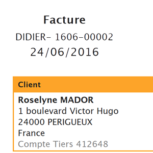 - Un client : c'est le client final du tiers émetteur (=mandant) pour lequel la facture est émise.