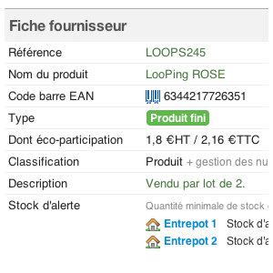 L'activation de l'app permet d'enregistrer sur vos fiches produits des données d'identification différentes pour un même produit acheté et revendu.