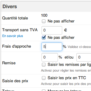 Ce champ "frais d'approche", permet de désigner par un pourcentage, la part des frais d'approche à appliquer à l’ensemble des lignes de la commande ou sur la fiche du produit.