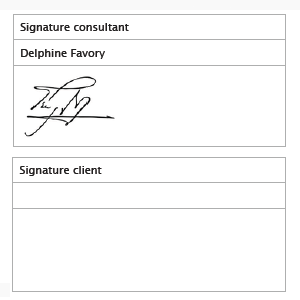 Un consultant peut intégrer automatiquement sa signature sur les fiches temps PDF de ses affaires.