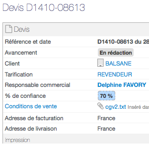 Créez ensuite simplement un devis ou une facture en appelant le type de tarification. Gérez ainsi des prix revendeur, distributeur, ou pour vos filiales par exemple et appliquez-les automatiquement sur vos documents commerciaux.