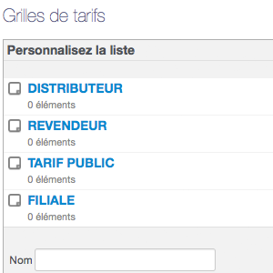 Sur la page "Accueil" de l'app, ajoutez vos grilles tarifaires : revendeur, distributeur, filiale, grand public, etc.