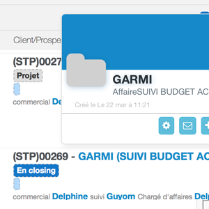 Par exemple, dans une liste d'affaires, de contrats, ou de documents commerciaux, lors du passage du curseur sur le nom du contact, une fenêtre se déclenche 3 secondes après.