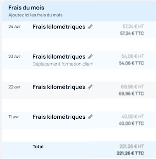 Pour obtenir ce calcul, lors d'un la saisie d'une nouvelle ligne de frais sélectionnez le type Frais kilométriques