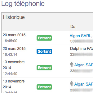 Avec l'app "Log de téléphonie", retrouvez l'historique des appels téléphoniques envoyés et reçus depuis votre CRM.