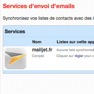 Ajoutez votre compte Mailjet pour synchroniser les services.