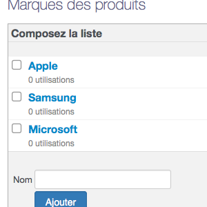L'activation de l'app vous permet de créer les marques et d'affecter une marque à chaque produit.