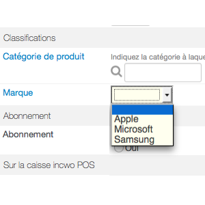 Rendez-vous sur une fiche produit et dans le champ "marque"