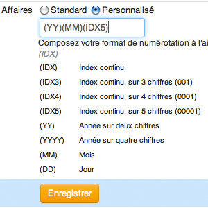 Après activation de l'app, vous pourrez composer le format de votre numérotation, comme vous pouvez le faire actuellement sur les factures. Pour cela rendez-vous sur la page "Accueil" de l'app.