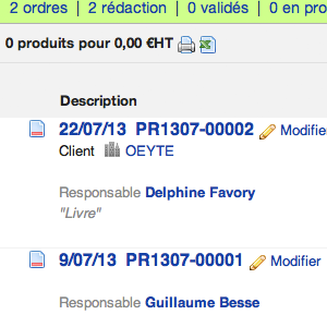 La numérotation et datation des ordres de production sont automatiques.