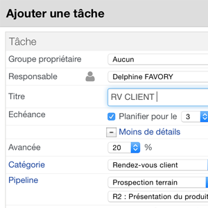 Lors de la création d'une nouvelle tâche depuis le menu "vos tâches" situé dans l'onglet "vous", un nouveau champ vous permet de sélectionner le "pipeline".