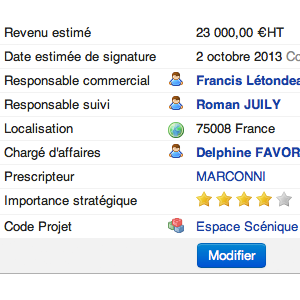 - L'affichage, sur la fiche contact du prescripteur, de la liste des affaires liées et des ventes associées