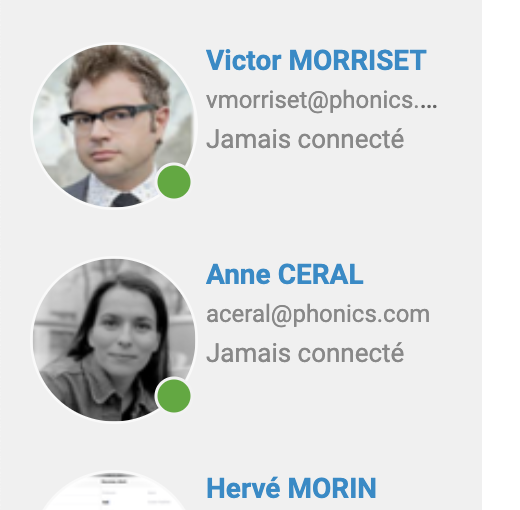 L'installation de l'app "présence" ajoute une pastille colorée sur les vignettes utilisteurs présente dans le logiciel.