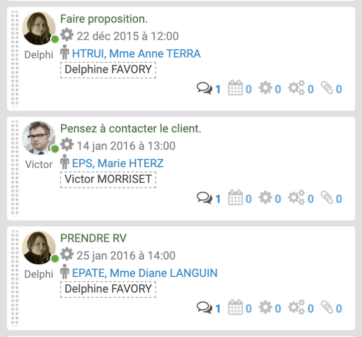 L'activation de l'app ajoute une pastille de couleur sur les vignettes correspondant à chaque utilisateur, dans plusieurs zones d'affichage du logiciel :
