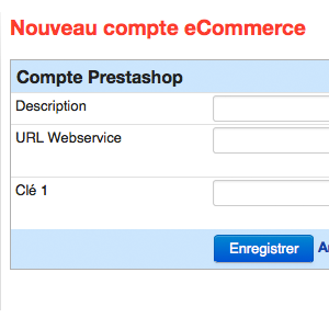 Cliquez sur « Ajouter un compte Prestashop » ou « +Prestashop ».