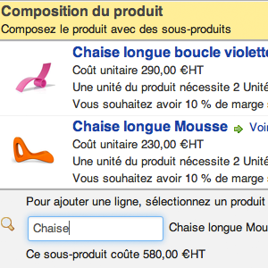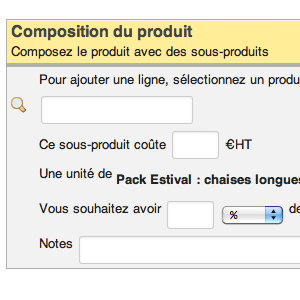 Pour composer le produits, dans le bloc "Composition du produit" :