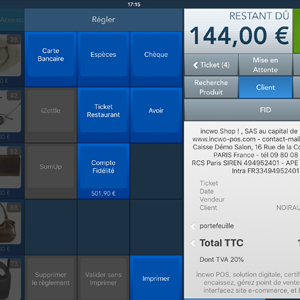 L'activation de l'app de "Programme Fidélité" ajoute, sur la caisse incwo POS, un nouveau mode de réglement client.