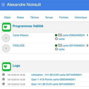 - L'historique du compte de fidélité dit LOGS (traçablité, date, et objet sur lequel les points sont acquis/consommés)